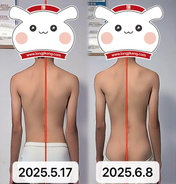 不到1个月,终于迎来了显著成效,小梁的体表中线回归中立位,剃刀背从7°减至2°,体态改善明显,愈发自信,重新展现出青少年应有的朝气与活力。