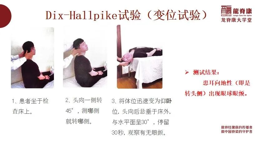 · Dix-Hallpike(变位试验):确定前(上)、后半规管 BPPV的常用方法;