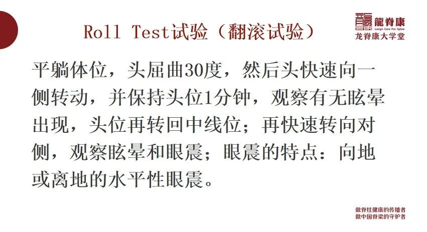 · Roll Test(翻滚试验):确定水平(外)半规管BPPV的常用方法。