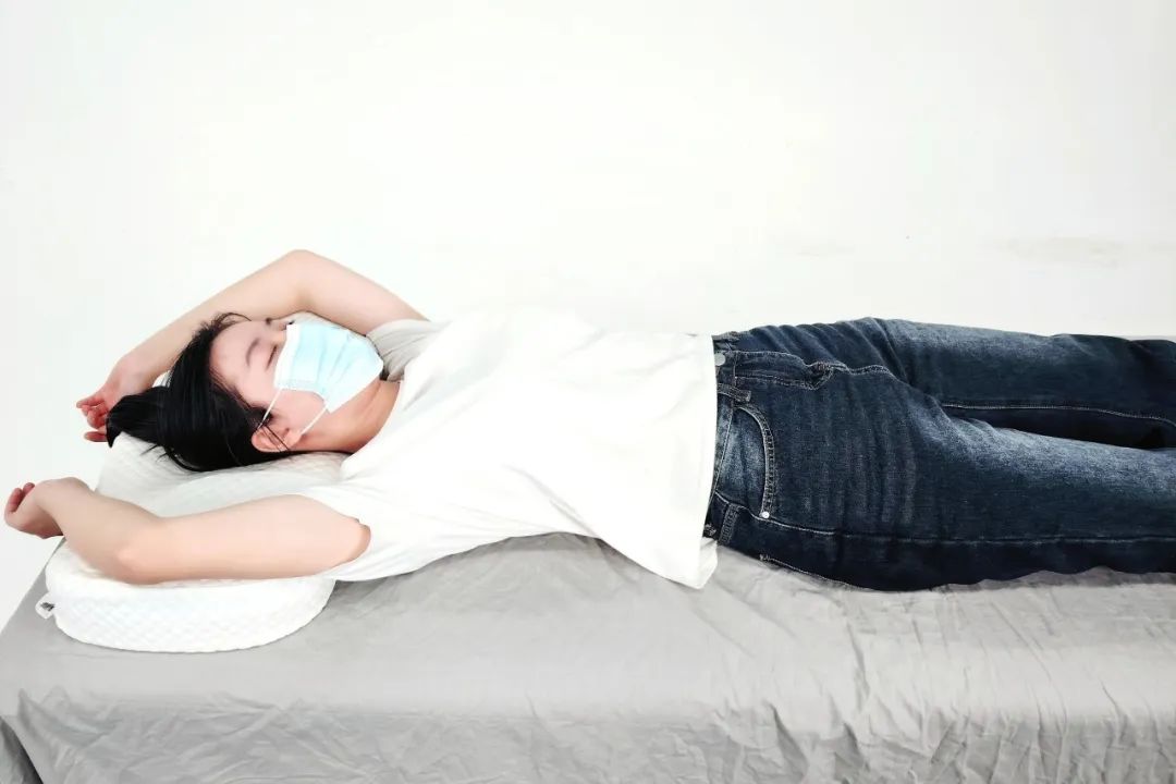 2、仰卧:膝盖下可垫薄枕,帮助维持腰椎生理曲度;枕头高度以一拳高为宜,保持颈椎自然弯曲。适合颈椎健康人群,减少面部皱纹产生。