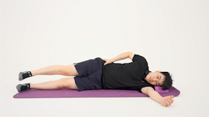 侧卧位髋外展:侧卧伸直下肢,缓慢外展上侧腿至30度,保持2秒后放下。注意脚趾朝前避免代偿。