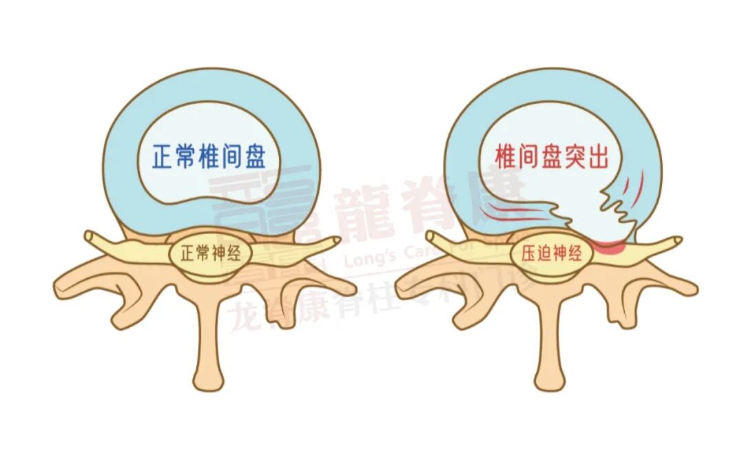 这种物理性压迫,加上突出的髓核物质可能引发的局部炎症刺激,共同导致了神经功能障碍,引发: