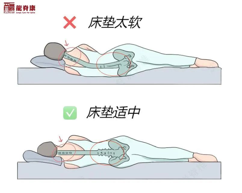 假如是很软的床,这样腰部躺上去后,床垫无法承托腰臀的重量,腰椎无法保持正常的生理曲度,长期如此,会加重腰椎间盘的负担,导致腰肌劳损,加剧腰痛。