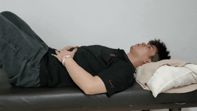 呼吸模式评估:双手扶腰站立,深吸气时若出现肋骨明显外翻,可能提示膈肌功能不足,部分呼吸负荷由腰部肌群代偿,长期可增加腰椎负担。