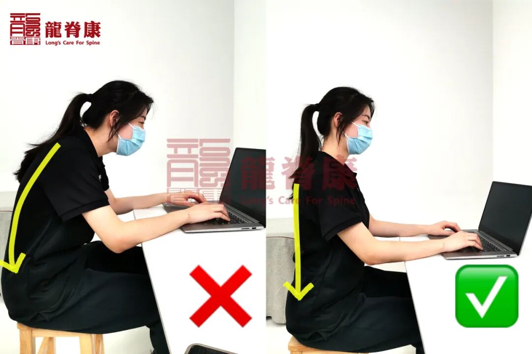 坐立时想象头顶有绳子向上提拉,肩膀向后向下沉。每工作1小时,起身做10次“扩胸运动”,及时调整体态。