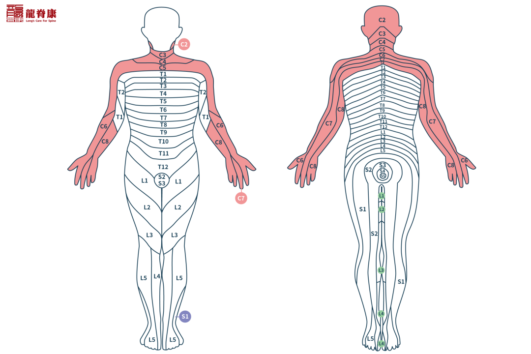 我们的颈椎有七节椎体,中间有弹性十足的椎间盘作为缓冲,并留有孔隙让神经血管通过。当椎间盘突出、骨质增生或韧带肥厚时,就会侵占这些空间,压迫到神经,从而引发一系列症状:
