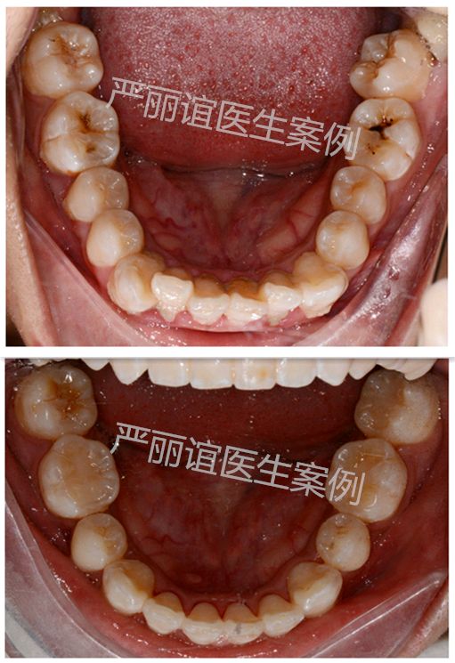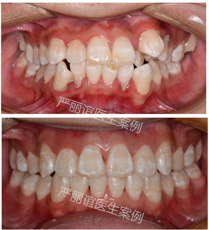 矫正方案:拔牙矫正,拔除14 24 34 44,排齐整平上下颌牙齿,内收上下颌前牙,调整前牙到正常的覆合覆盖,后牙到中性咬合关系。