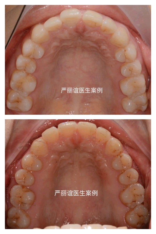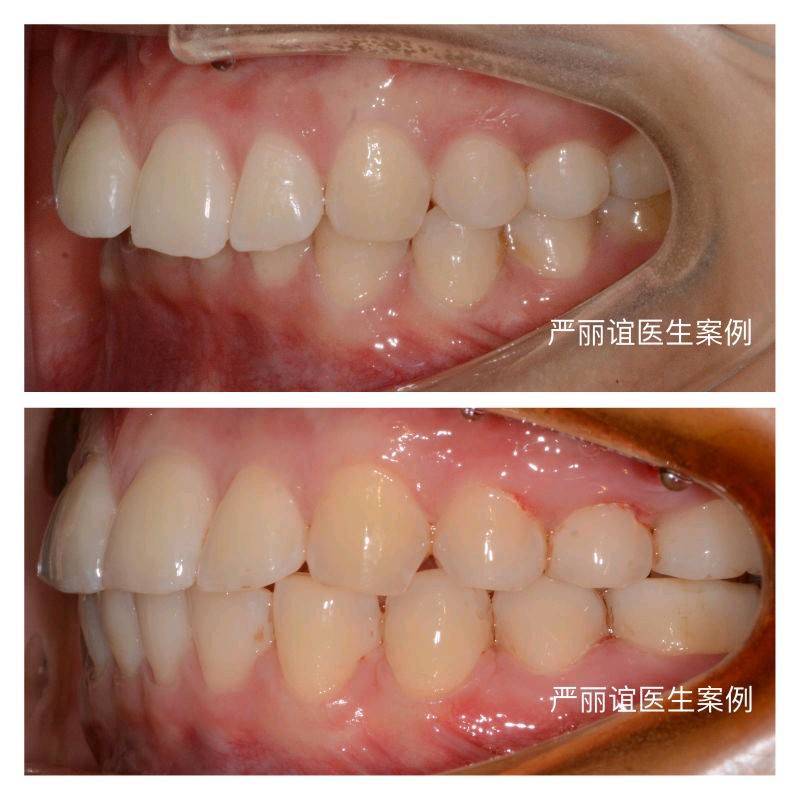 矫正方案:拔除上颌两颗智齿,排齐整平上下颌牙齿,内收上颌前牙(种植钉辅助)改善侧貌,压低下颌前牙解除前牙深覆合,调整前牙到正常的覆合覆盖,后牙到中性咬合关系。