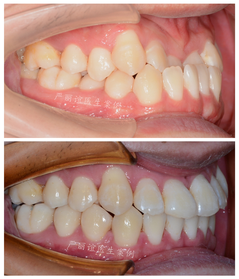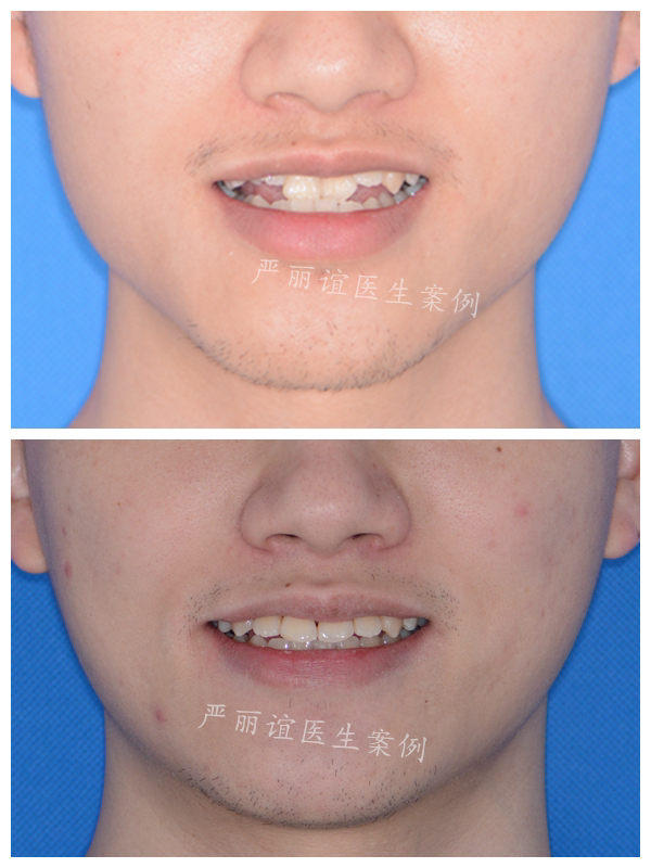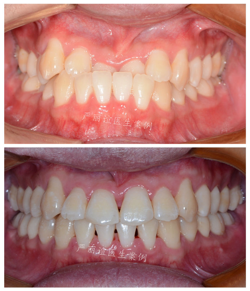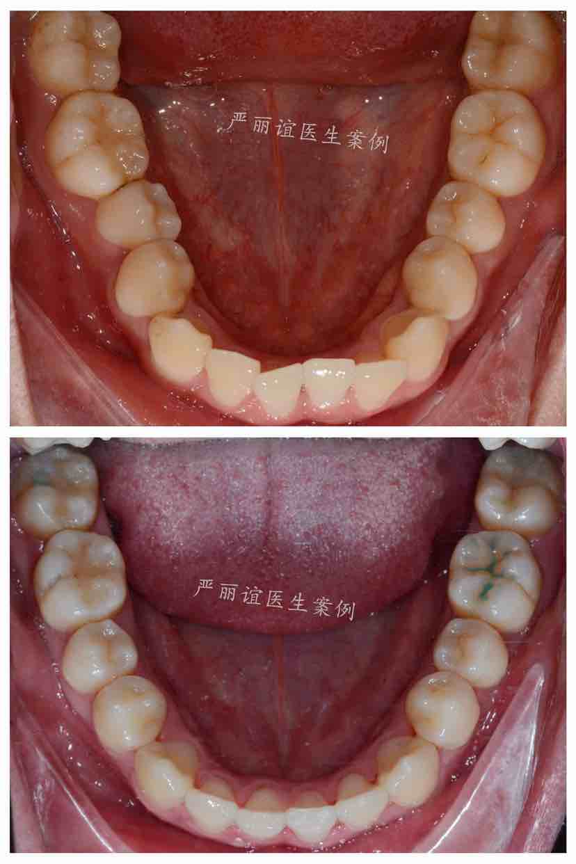 矫正方案:排齐整平上下颌牙齿,内收下颌前牙解除前牙反合问题(种植钉辅助),调整前牙关系到正常的覆合覆盖,后牙到中性咬合关系。
