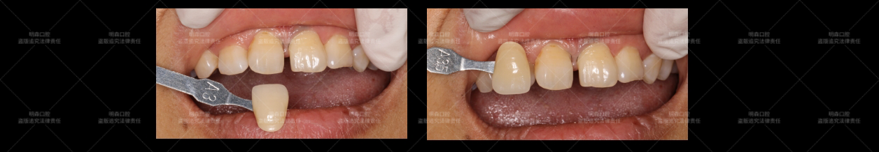 · 张女士确认满意后,使用高强度、半透明树脂水门汀进行粘接;