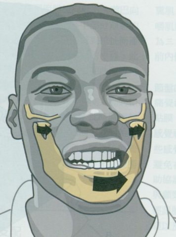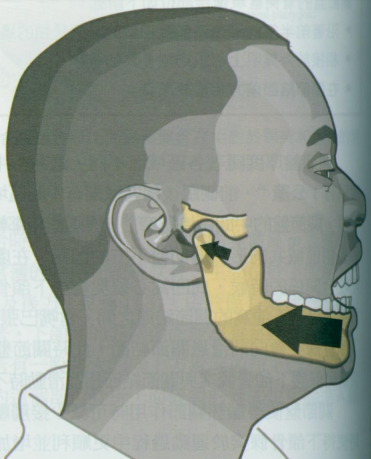 这个关节除了能做张口、闭口的动作外,还可以进行牵伸、后缩、侧移的动作。