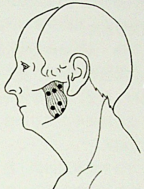 具体操作:咬紧牙关,摸到下颌附近隆起最高的点,放松牙齿,该肌肉变松弛,说明这就是咬肌。在其实寻找疼痛点,用手指进行深按压,1分钟一组,一天6组。