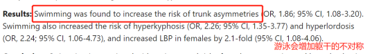 但单纯只是依靠游泳,是无法使脊柱侧弯得到改善的,甚至在姿势不良的游泳活动中还有加重躯干旋转(即剃刀背加重)的风险。