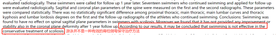 2020年土耳其学者对于700个游泳运动员进行了为期一年的随访发现:一年后,这些游泳者的脊柱X光片显示,游泳并没有对于侧弯提供任何的改善或是稳定,游泳并不是一项行之有效的脊柱侧弯保守治疗方法[2]。