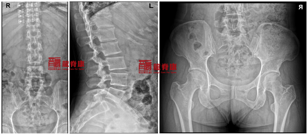 2024-11-7 骨盆腰椎X光提示:骨盆明显左高右低,腰椎L3为中心向左侧凸,棘突偏右。腰椎上段生理曲度反弓。