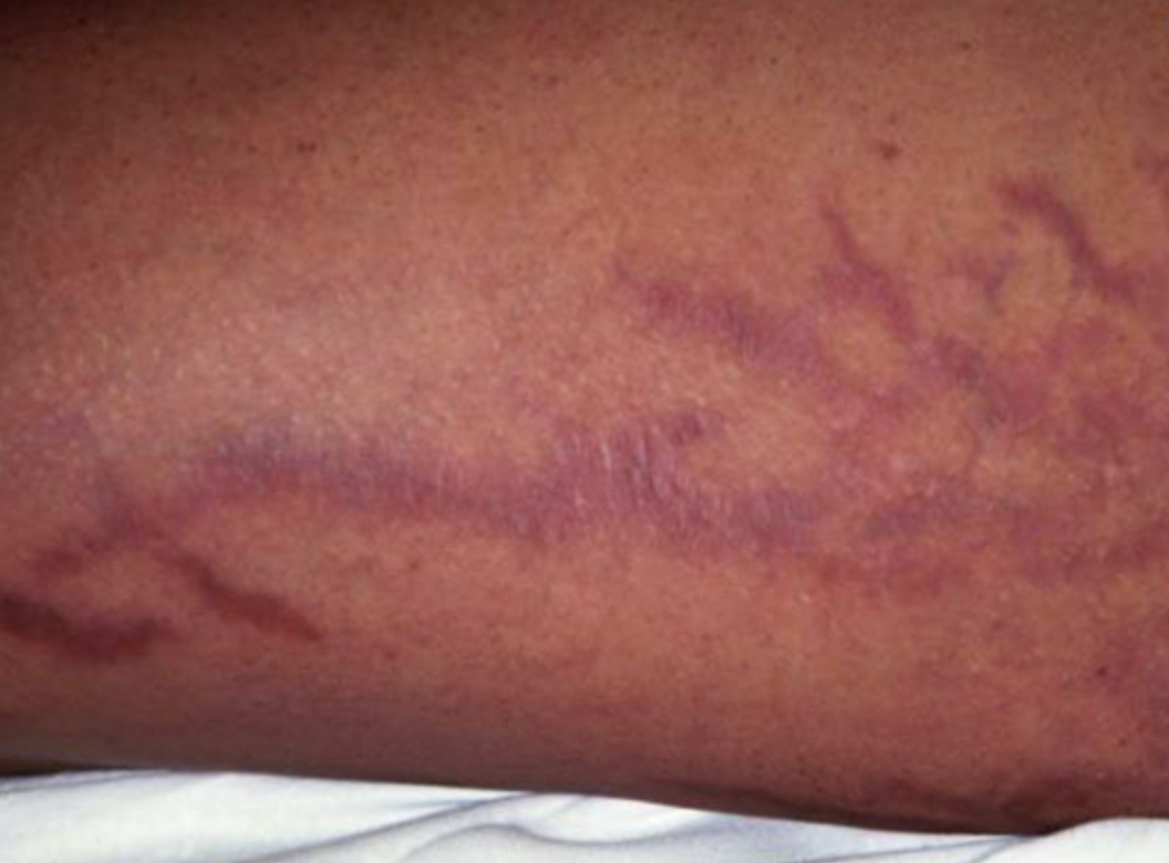 膨胀纹常以对称分布的形式出现,条纹通常沿皮肤张力线方向发生,直径为几毫米至1厘米。出现位置:腹部、臀部、髋部、腰部、大腿、乳房、上臂内侧、腋下。通常无症状,但影响外观。