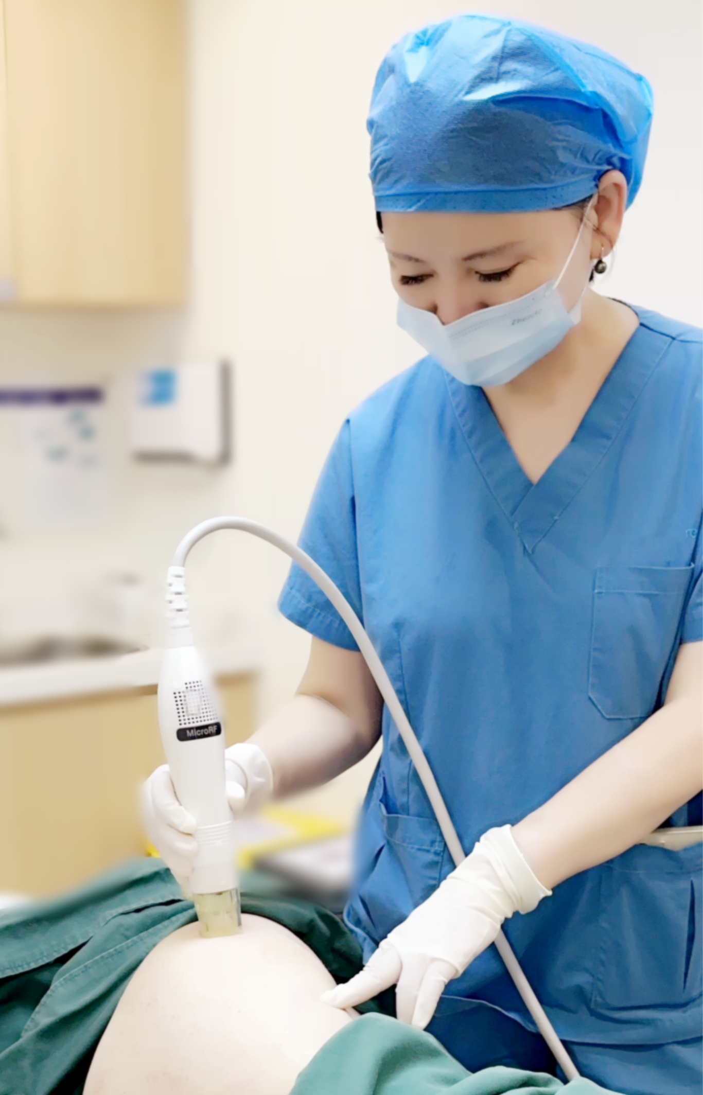 目前,治疗膨胀纹的优选微针疗法为射频微针,所用设备可同时进行微针治疗和给予射频能量。这种联合设备可在微针尖端或表面发射射频能量,人们认为其可增强真皮重塑和临床效果[2]。