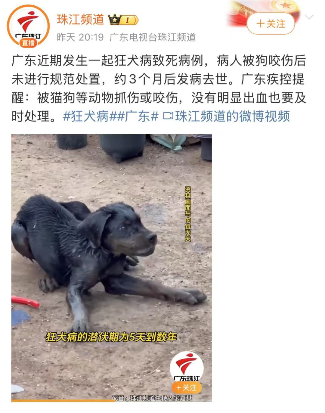 近日广东一例狂犬病死亡病例引发关注,患者被咬后并未就医处置,3个月后发病,医治无效身亡。