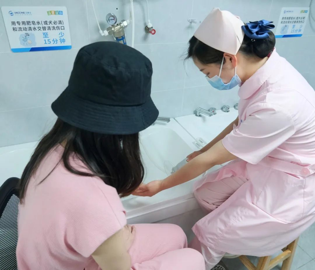建议使用国家二类医疗器械资质的狂犬病暴露专业冲洗设备和专用冲洗剂对伤口内部进行冲洗。