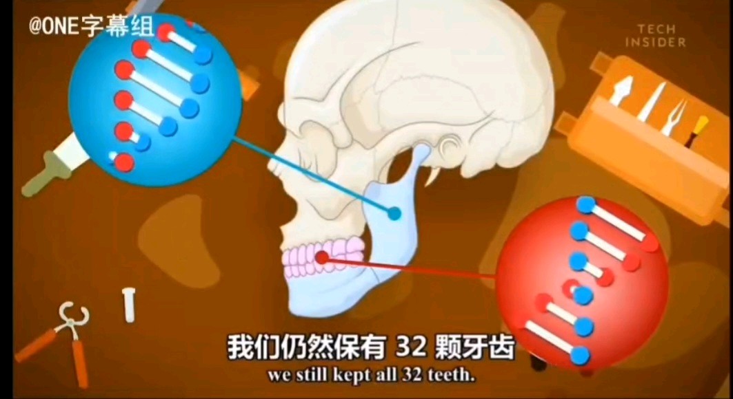 那时人类的下颌骨也比现在更大,考古史前人类的颚就是明证。