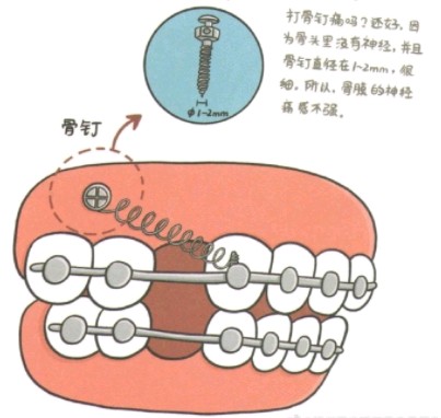 骨钉是正畸中一种很强的支抗(用来作为正畸力的支点),对于嘴凸,缺牙间隙大,深覆颌,反颌的案例很有效,总体来说局麻下没什么疼痛,术后反应也还好,但是宝宝们光听名字就会有点吓到。