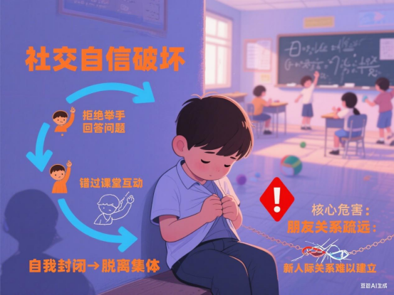 腋臭对孩子的首要危害,是破坏社交自信,导致社交退缩。长期的自我封闭会让孩子逐渐脱离集体,原本熟悉的朋友关系变得疏远,新的人际关系难以建立。临床中常见这类孩子因 “怕被议论”,连举手回答问题都犹豫,生怕吸引他人注意,进而错过课堂互动机会,陷入 “社交越少→越孤僻” 的恶性循环。