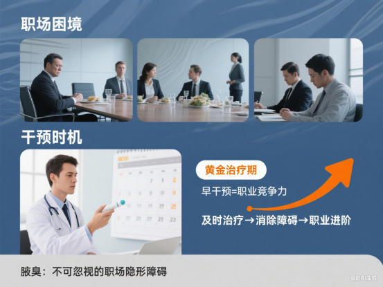对上班族而言,腋臭的危害远不止 “气味尴尬”,若长期忽视,可能在客户沟通、团队协作、职业晋升中形成隐性障碍,等到明显影响职业发展再干预,往往已错失最佳时机。