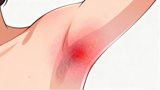 许多患者依赖外用药物抑制异味,但部分产品通常含有氯化铝、酒精、香精等成分。长期频繁使用,会反复刺激腋下薄嫩的皮肤,导致其变得粗糙、暗沉、色素沉着,甚至引发接触性皮炎,出现红肿、瘙痒、脱屑等症状。