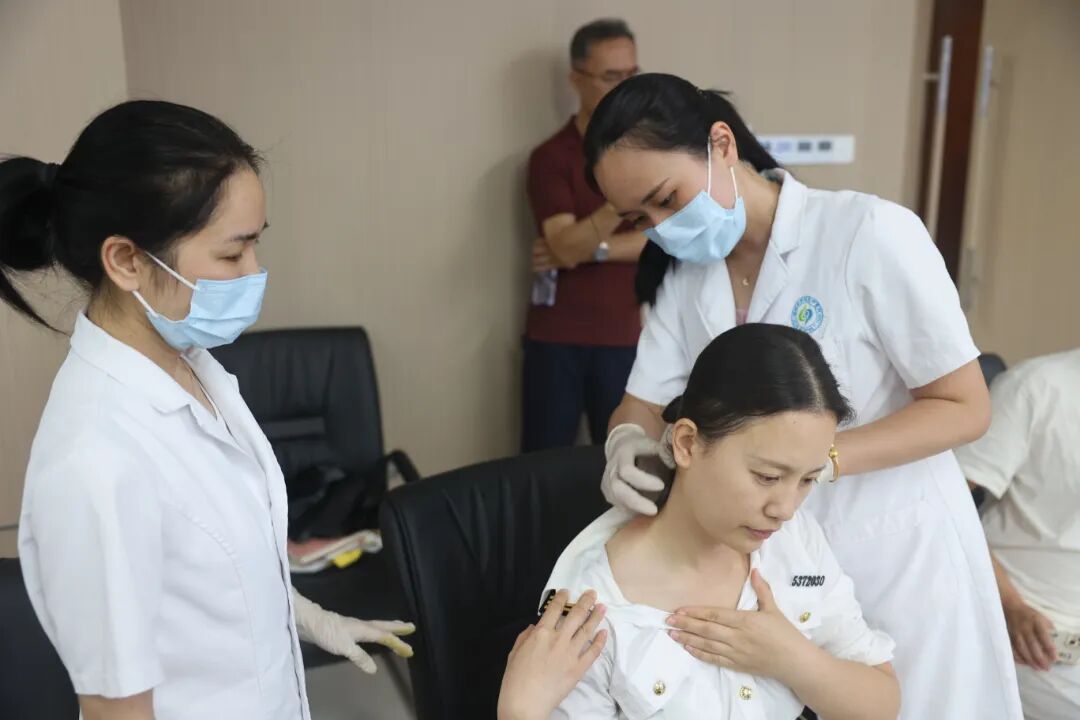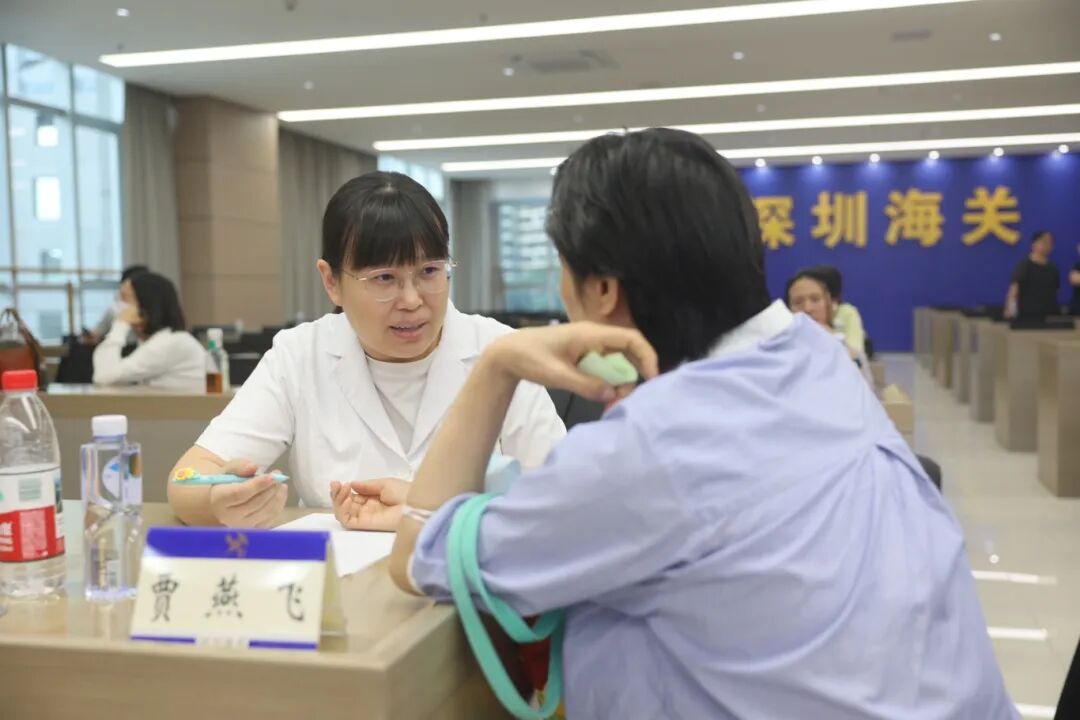 随后开展的义诊环节,将此次活动推向高潮。罗湖区中医院针灸二科专家团队为海关工作人员把脉问诊,针对体质偏颇、失眠、疲劳综合征等常见问题,采用针灸、推拿、温通拨筋罐、耳穴压豆等中医绿色疗法现场施治。