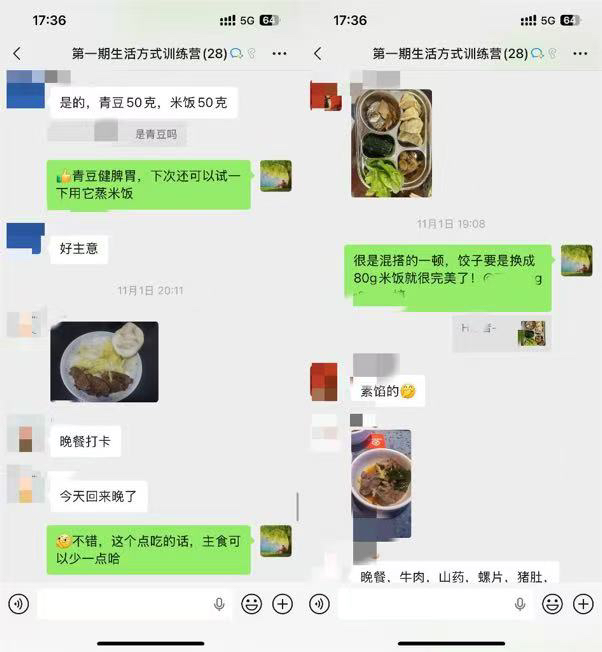 21 天是习惯养成的关键周期,针灸二科诣在通过公益性质的饮食指导及运动指导,帮助营员们在21天的时间里养成良好的生活习惯,通过饮食及运动改变来调整身体亚健康状态,以 “在线打卡 + 医生陪伴” 的模式,让健康管理不再是孤军奋战。每日三餐,营员们通过群里打卡当日饮食、运动情况,上传身体感受(如饮食感受、睡眠质量、疲劳程度);医生团队则会实时查看打卡数据,针对不当饮食(如过量摄入、饮食结构不合理)、不合理运动方式(如强度过大、运动心率不足)及时给出调整建议,对慢病人群(如慢性疲劳综合征、胰岛素抵抗、脂肪肝)提供中医治疗(如穴位埋线、艾灸、针灸)。这种 “日常监督 + 中医治疗”的模式,让营员们在21天中既掌握健康管理技巧,又改善了身体偏颇体质。