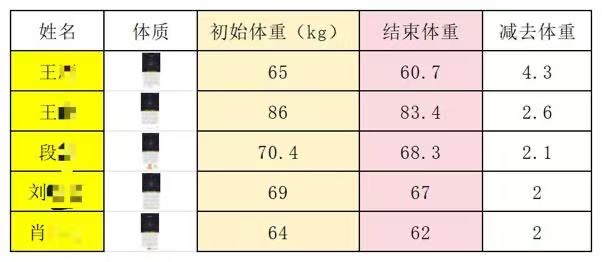 更令人欣喜的是,营员的亚健康状态得到了显著改善:“通过参加这次训练营,我的生活作息规律了,睡眠时间调整了,白天疲劳感大大减轻,最重要的是我学会了如何健康合理的进行饮食搭配”,这是来自一位平时工作压力比较大的营员的反馈。“之前总是想发脾气,看到什么都觉得不顺眼,通过这次训练营,我养成了定时吃饭、规律运动的好习惯,每天运动后,觉得整个人心情都舒畅了,睡眠质量更好了,脾气没有以前那么急躁了,惊喜的是我的体重下降了,之前刻意的节食减肥总是会反弹,过程还很痛苦,没想到这次只是调整了饮食结构和运动,体重竟然下降了”,这是来自一位宝妈的反馈。大部分营员反馈疲劳感减轻,睡眠变好、体质改善,其中肩颈酸痛、头晕等症状明显缓解;还有 5位营员实现了体重下降,减重 2-4kg,且体重下降的同时,身体状态(如精力、免疫力)并未受影响,反而更加良好。