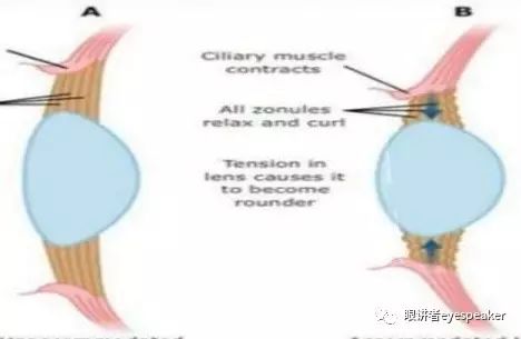 图A:睫状肌放松,晶状体变扁平,可以看清远处的物体;