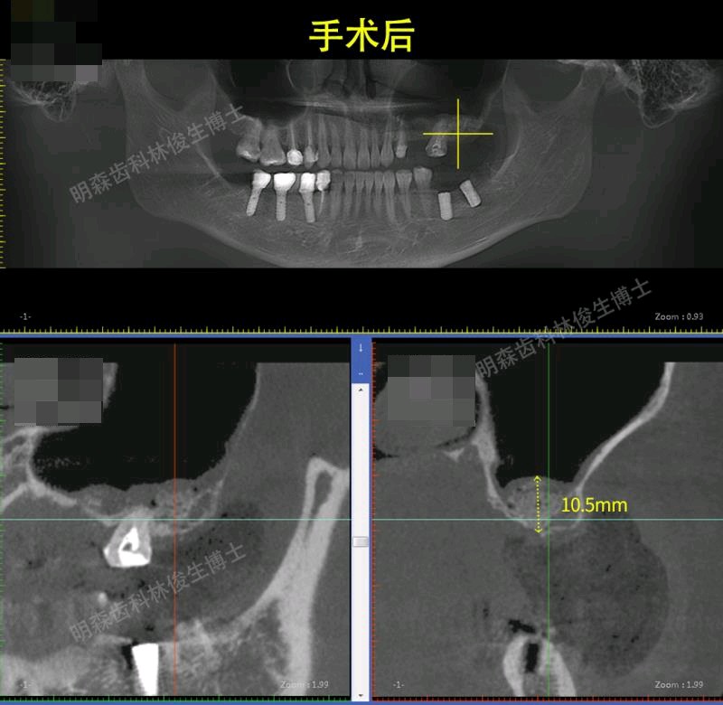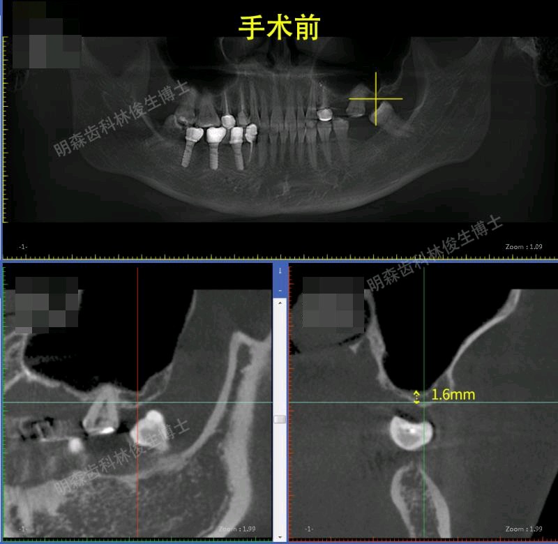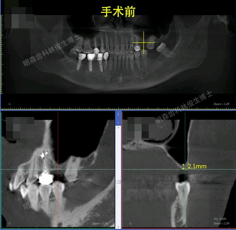 辅助检查:cbct示:25,27牙槽骨高度不足,36,37牙槽骨高度尚足