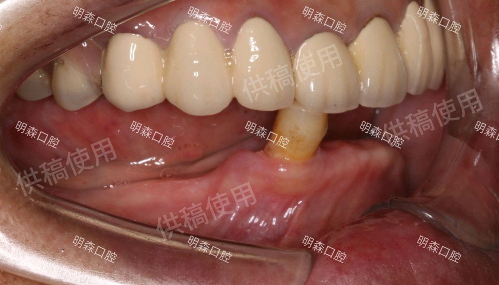 患者是一位80+岁的老人,下颌牙列缺损20余年,在外院多次进行活动牙修复均不能咬合,严重影响日常饮食,了解到以前的老同事在我这里做了种植牙之后,也来找我做种植修复。