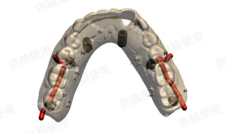 该病例患者年纪大,下颌骨骨量严重不足,手术易损伤下颌神经管,手术难度大对种植医生的技术及经验要求都非常高,在传统种植牙中,没有有效仪器设备的辅助,单纯依靠医生的感觉经验以人工目测的方式确定人工牙根的位置,以“盲种”的方式进行种植牙加大了手术的风险。