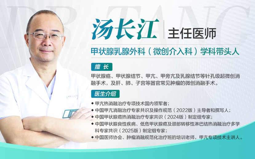 作为国内甲状腺消融治疗领域的权威专家,深圳远东妇产医院甲状腺乳腺外科(微创介入科)学科带头人汤长江主任参与了本共识的制定工作。