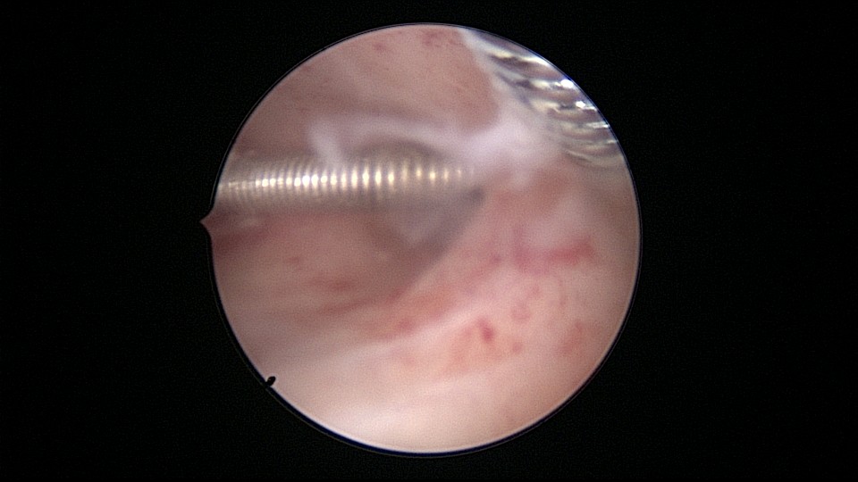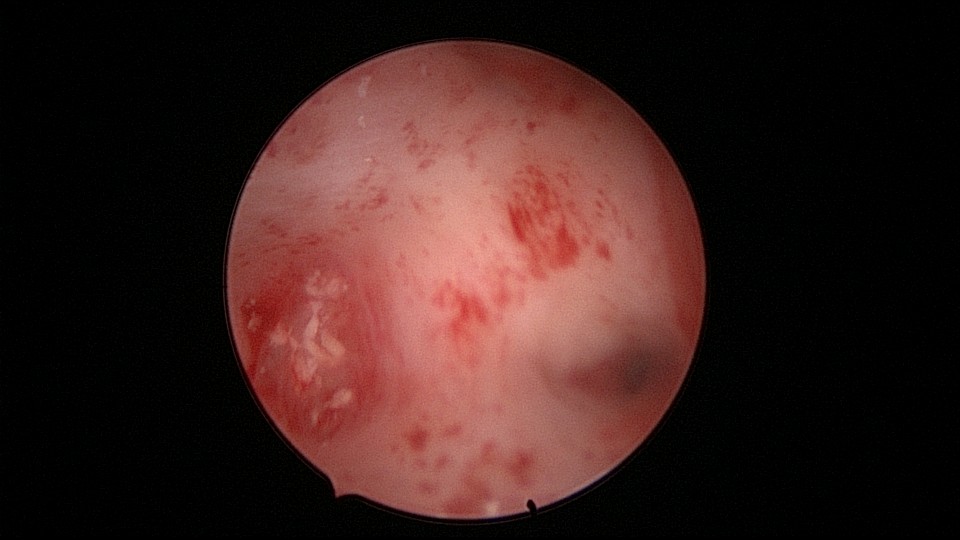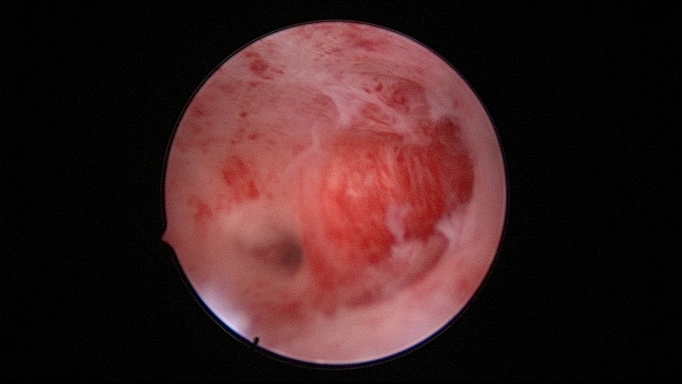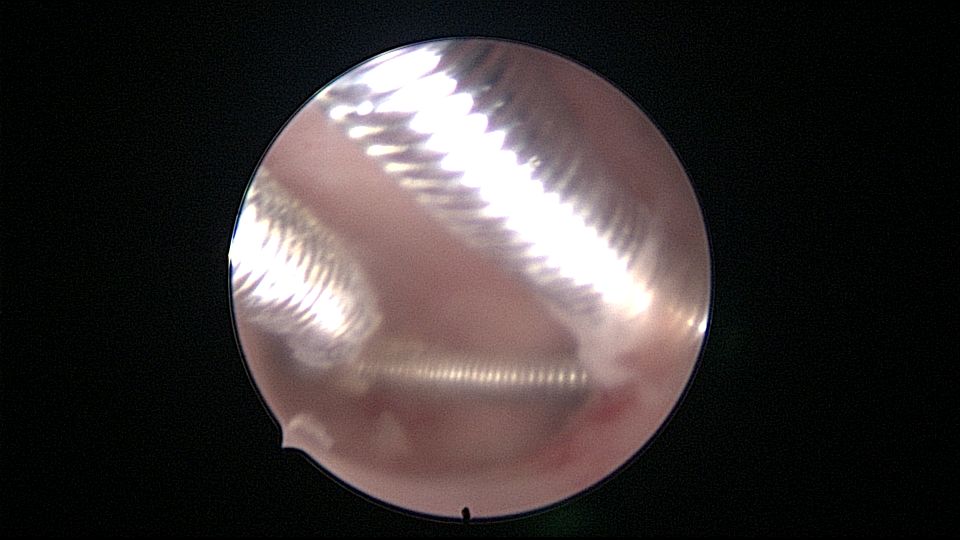 患者57岁,G2P2,顺产2次。1985年在医院足月分娩,1987年安环,1989年带环受孕,在家足月分娩,节育环情况不详,后偶有B超检查,医生未告知患者宫内节育环情况。现绝经8年,腰骶部及小腹部不适5年,外院B超检查提示宫内节育器,病人很惊讶有环。子宫前位,宫深6cm,宫颈及子宫萎缩,宫腔镜见宫颈管封闭粘连,宫腔镜直视下充盈膀胱,B超监护下镜鞘分离粘连,进入宫腔,见宫型环位于宫腔内,与左侧宫壁嵌顿,异物钳难以取出,取环钩将环拉至宫颈外口,中弯钳拉出节育环,环变形,完整,宫壁见节育环割裂痕迹,宫腔无其他异常。每个节育环都有一个故事。