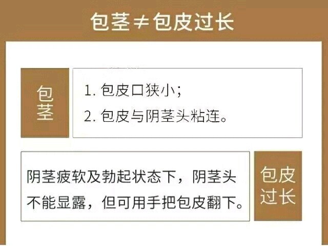 包皮过长——指包皮覆盖尿道口,但能上翻,露出尿道口和阴茎头,但往往伴有包茎。