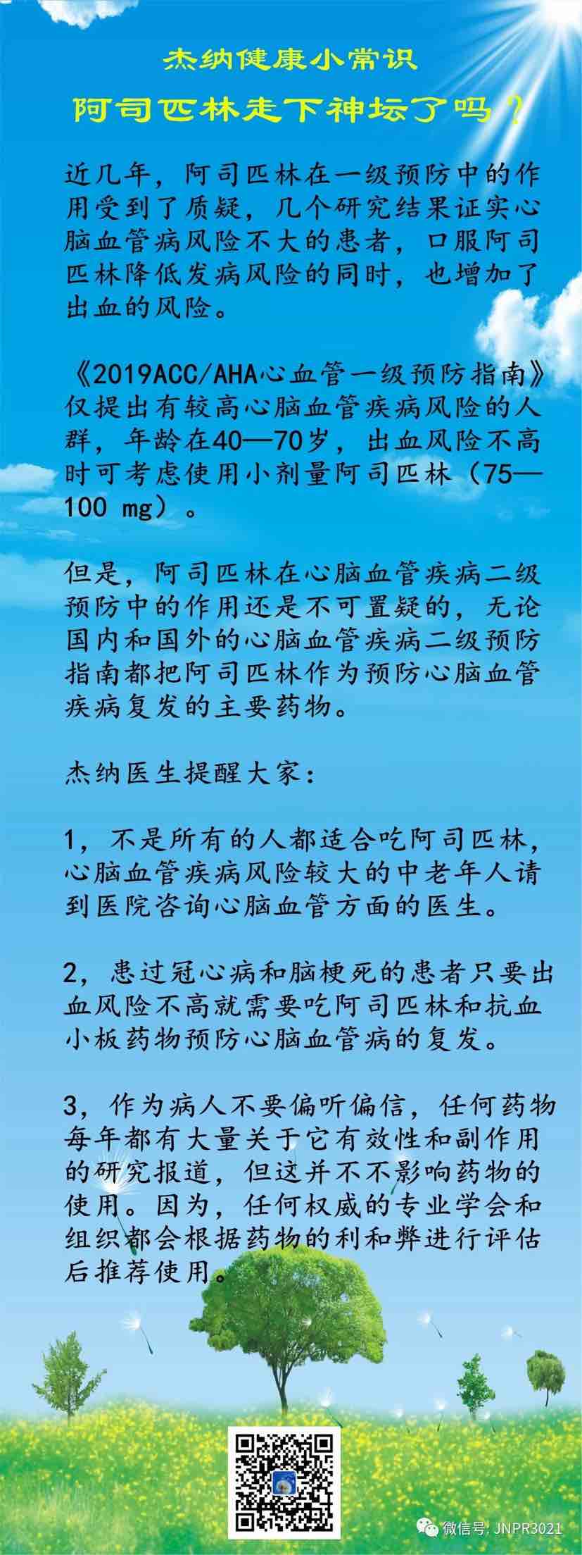 王大爷:网上说阿司匹林走下神坛了?据说阿司匹林容易引起脑出血,你说我还吃不吃阿司匹林了?