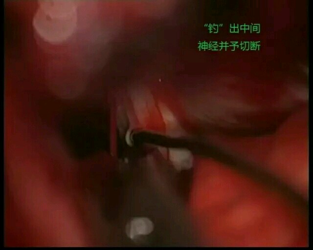 “由于中间神经藏匿于其它神经背后,就像鱼在水里看不见,我们需要做一个吊钩一样的源头探针,先把它钓出来再切断。”蔡坤皓医生说。