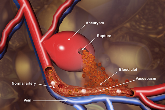 颅内动脉瘤是颅内动脉血管由于先天异常或后天损伤等因素导致局部的血管壁异常膨出或膨大,它类似于轮胎“鼓胎”一样,动脉瘤破裂就像轮胎爆胎一样,血液喷涌而出。情绪激动、血压忽然升高、用力排便、妊娠晚期、分娩、体力劳动、性生活、剧烈运动等都是动脉瘤破裂的诱发因素。