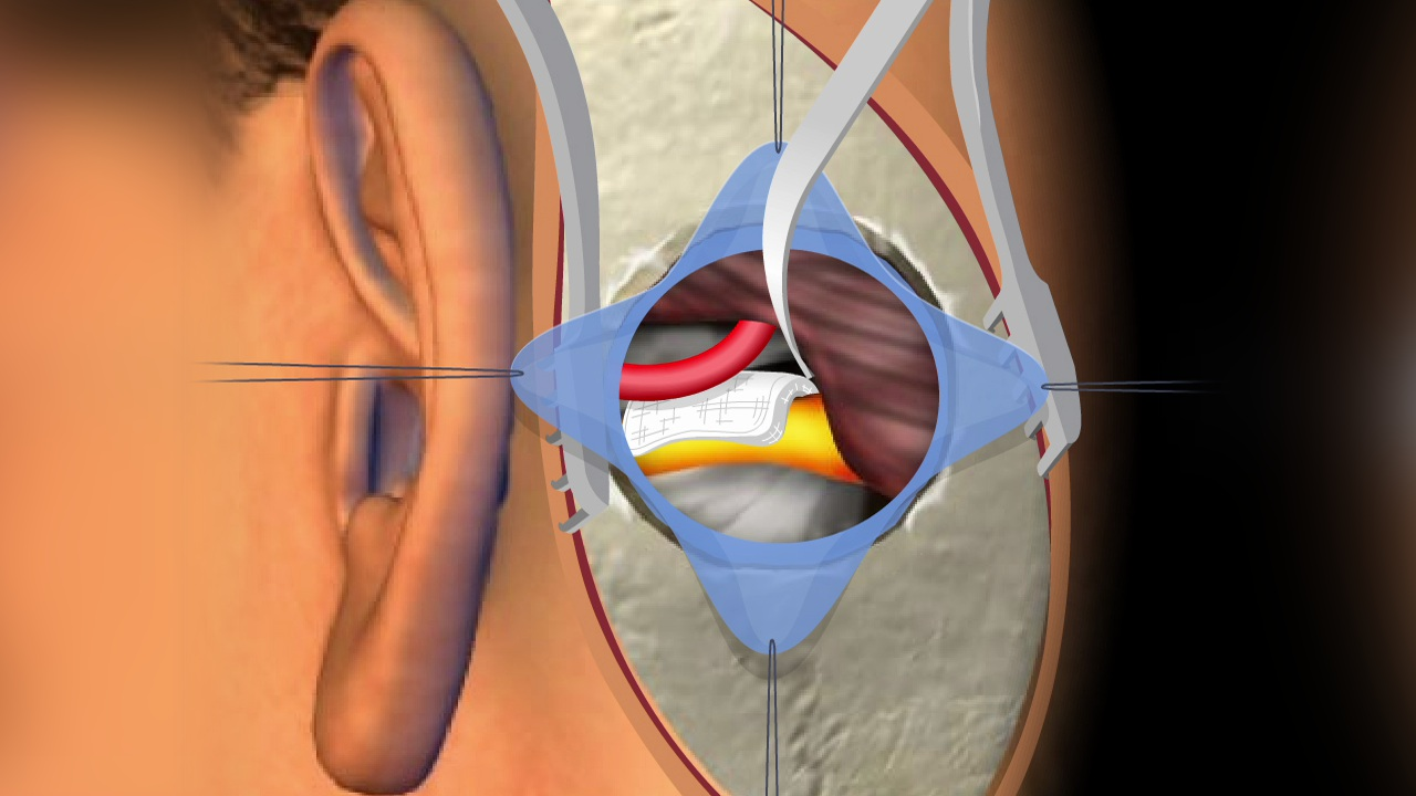 而且手术伤口很小,就在耳后开一直径约3厘米的骨孔,在显微镜下找到压迫面神经的血管,分离血管与神经并在中间垫入一小块垫片(Tefflon棉),使血管不能复位,从而解除血管对神经及神经入脑干区处压迫,达到治疗目的。