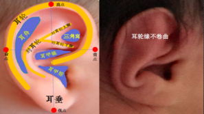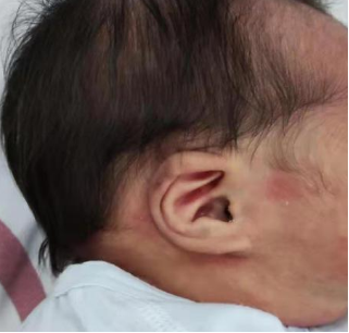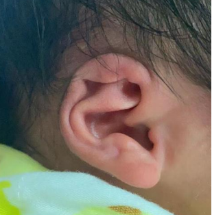 而有的新手妈妈会发现自己的宝宝耳廓有点怪怪的,像这样。