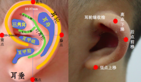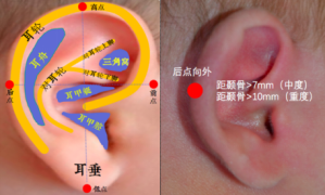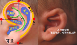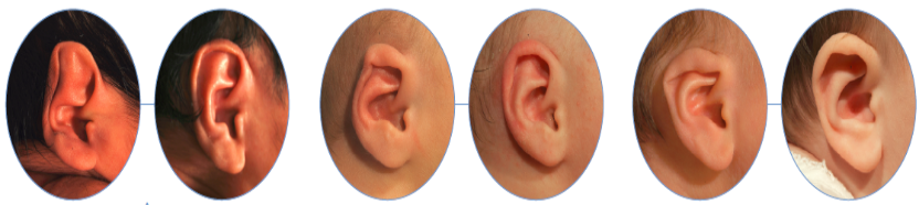 这种情况在临床上称之为先天性耳廓畸形。先天性耳廓畸形分为耳结构畸形(由于胚胎期耳廓发育异常而造成的耳廓畸形、耳廓的皮肤或软骨组织缺失)和耳形态畸形(由于产道挤压、胎位睡姿等外力因素以及耳內肌、耳外肌的异常发育引起的耳廓形态学变化)。经临床统计,在珠三角地区(广州、东莞、珠海、中山、深圳), 先天性耳廓畸形发生率高达57.46%,约30%的轻度耳廓形态畸形可自愈,不能自愈者需尽早进行干预,否则后期需要通过手术来矫正。