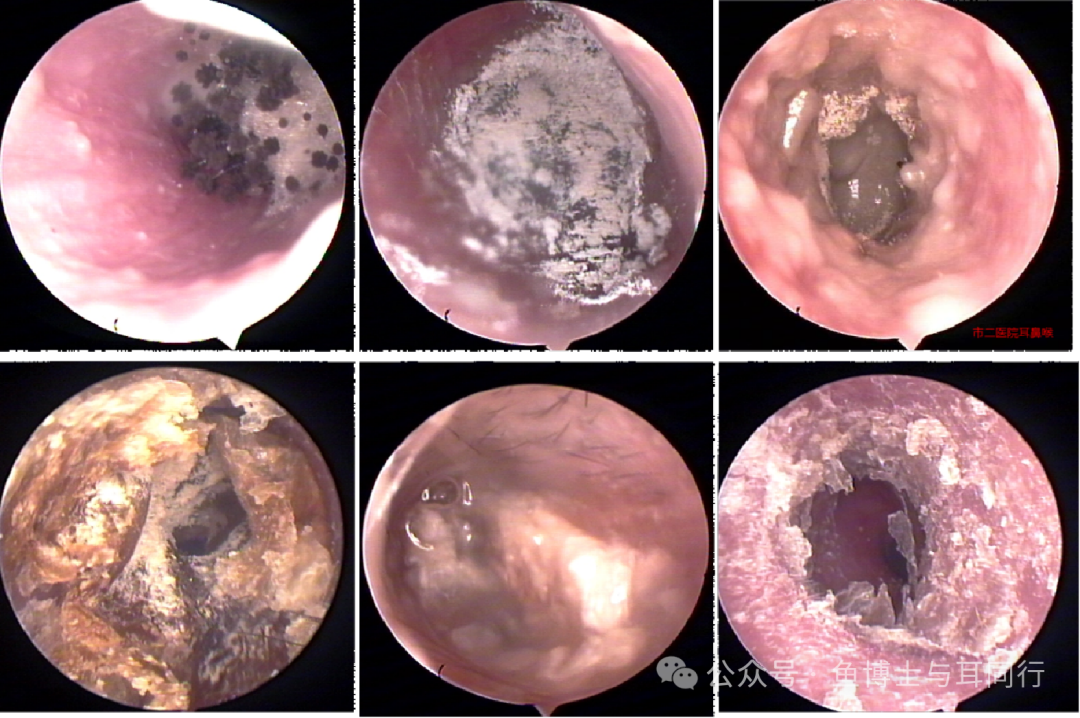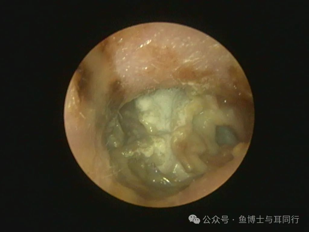 外耳道里满满的灰白色分泌物及真菌!