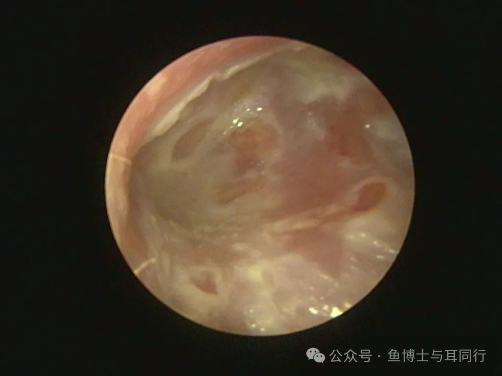 李爷爷曾经做过左侧中耳胆脂瘤手术,真菌感染使得整个术腔粘膜水肿糜烂,清理后的外耳道再涂上薄薄一层药物是这样的?