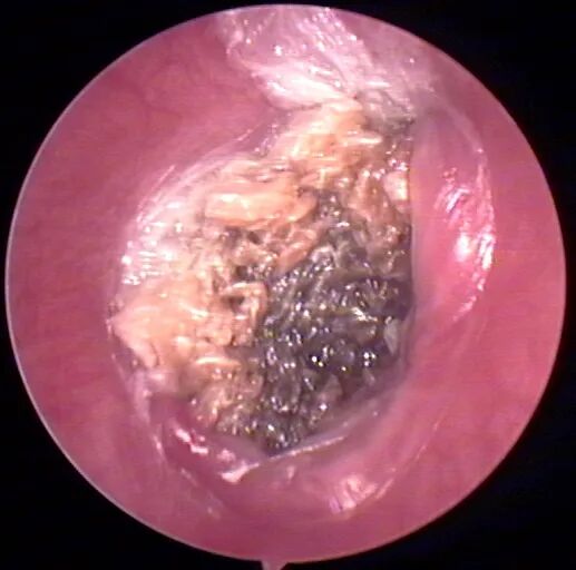 在温暖潮湿的南方,不少人莫名感觉耳朵痒,有时还有些堵,但是不怎么痛,买点氧氟沙星滴耳液滴了好几天也没见好转。 注意,这可能是耳朵里长了小蘑菇,又叫真菌性外耳道炎,或霉菌性外耳道炎。 但是有时虽然看不到菌毛和孢子,但实际上也是真菌感染,比如: 这种情况下,最重要的治疗是在耳内镜下将外耳道清理干净,然后涂药,才能得到比较好的效果。 耳内镜下的操作需要细心、耐心和手巧,需要观察并清理外耳道每一个角落,比如 乍一看,已经比较干净了哦,但是如果换个角度就会发现 在边缘的角落里还有一些痂皮没有清理干净,这往往是复发的隐患,一定要彻底清理。 涂药时也不需要涂太多,薄薄一层就好,避免出现闷堵感,如