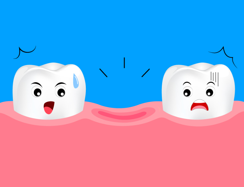 缺牙后不及时修复,邻近的牙齿移动后,牙齿与牙齿间会出现缝隙,容易使食物嵌塞到牙齿间隙里,发生龋齿等牙齿疾病。