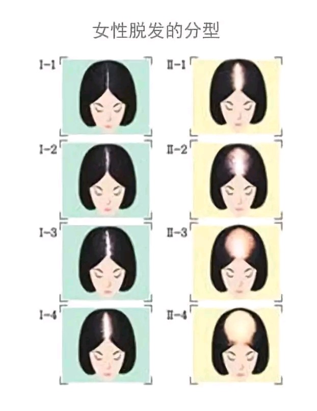 女性雄激素性秃发主要表现为:头顶部头发稀疏,从发顶向两侧蔓延,最多见的是头皮毛囊的整体萎缩,头发大量脱落。
