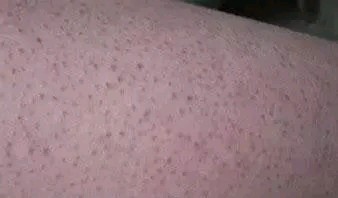 我们俗称的“鸡皮肤”,学名叫做毛周角化症,和常染色体显性遗传、维生素A缺乏、代谢障碍有关。毛周角化症是因为毛囊周围的角质增厚,毛囊被过厚的角质堵塞了,但并非每个携带该基因的人都会得鸡皮肤,鸡皮肤在儿童期或青春期开始发病,虽说是遗传病,但它并不会引起其它的健康问题。